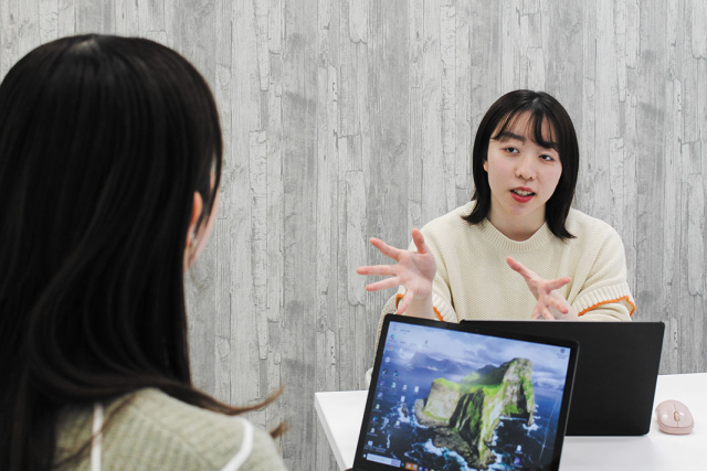 エンジニア=パソコンに向き合う仕事と思っていましたが、実際はチームで話し合ったりお客さまのお話を伺う機会が多く、大学時代に心理学で学んだコミュニケーションスキルが役立っています。